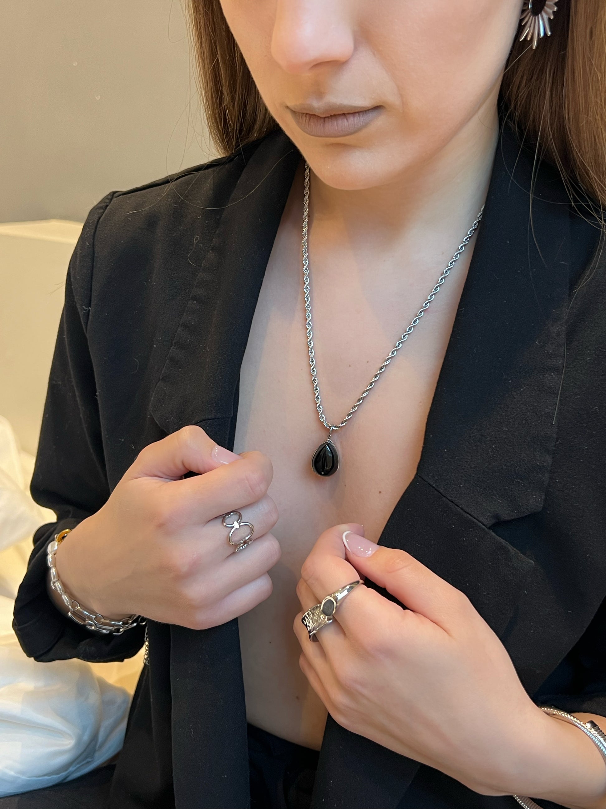 Σας παρουσιάζουμε το Black Drop! Κατάλληλο για άνδρες και γυναίκες, αυτό το κομμάτι είναι κατασκευασμένο από υψηλής ποιότητας ανοξείδωτο ατσάλι και διαθέτει δυναμικό σχέδιο. Ετοιμαστείτε να κάνετε μια δήλωση μόδας και να προσθέσετε μια πινελιά στυλ σε κάθε ντύσιμο με αυτό το διαχρονικό αξεσουάρ.