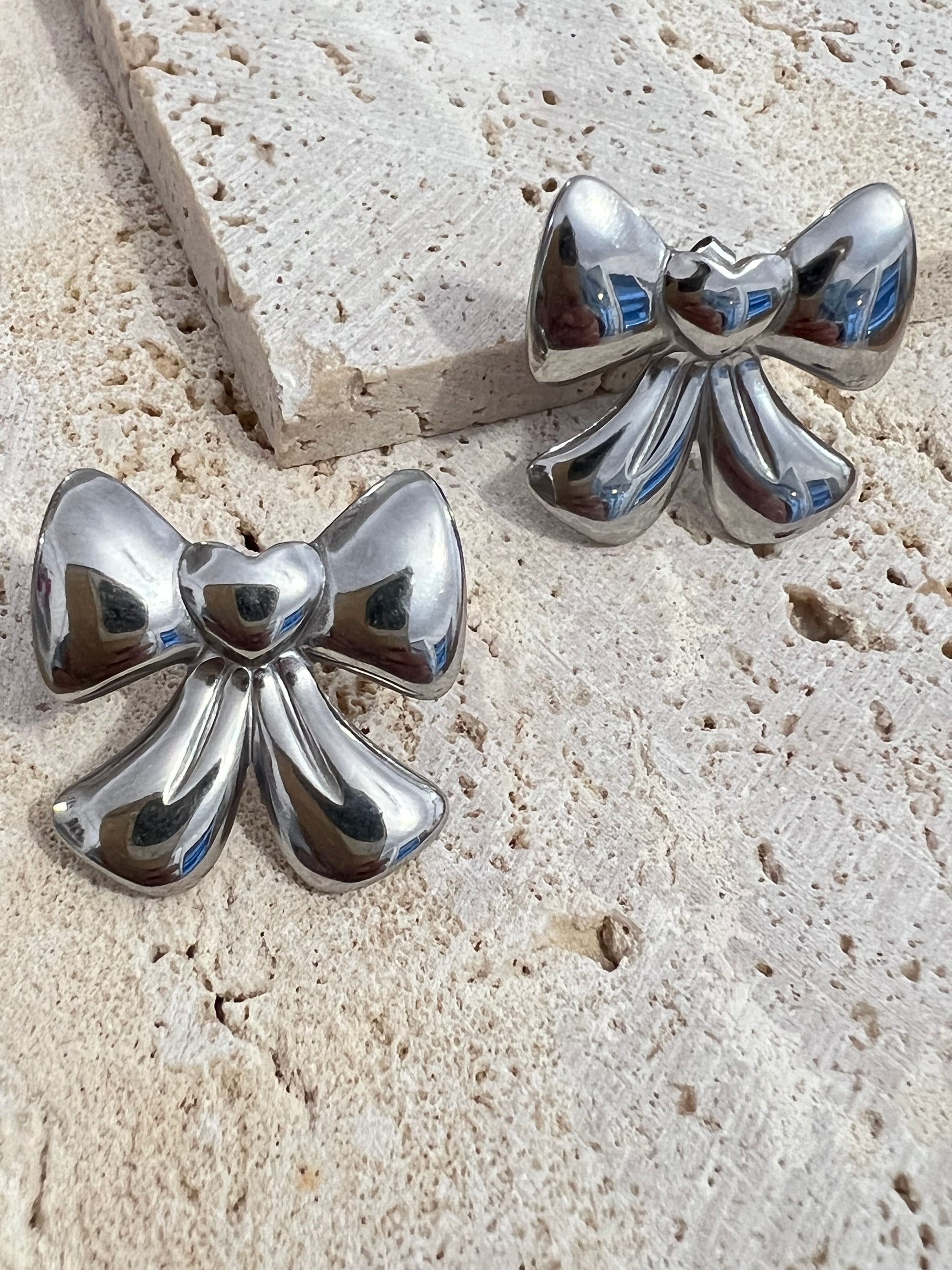 Ντυθείτε με Bow καρδιές! Τα όμορφα αυτά ασημί σκουλαρίκια διαθέτουν λεπτούς φιόγκους που προσθέτουν μια πινελιά θηλυκότητας στην εμφάνισή σας. Αφήστε το δυναμικό σχέδιο αυτών των σκουλαρικιών να σας κάνει να νιώσετε αυτοπεποίθηση και προσθέστε μια κομψή πινελιά σε κάθε ντύσιμο. Τέλειο για κάθε περίσταση, ιδανικό για κάθε λάτρη της μόδας!