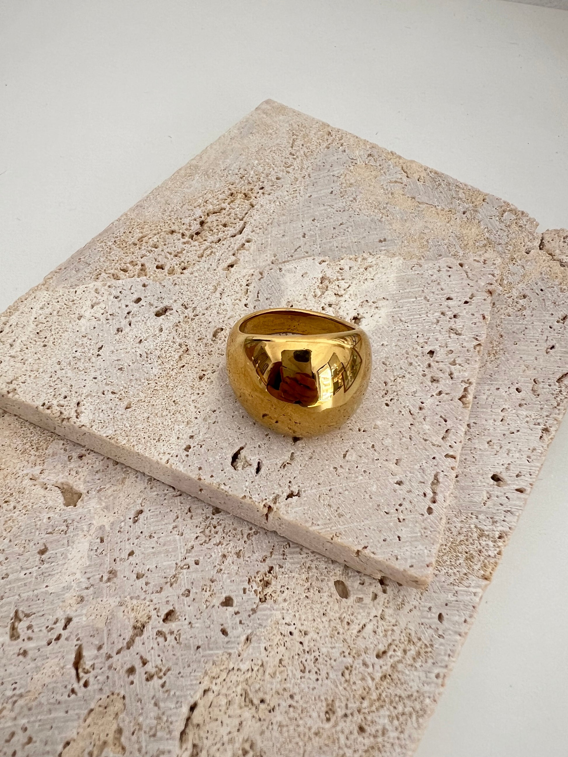 Το εκθαμβωτικό δαχτυλίδι Bubble είναι κατασκευασμένο από ανοξείδωτο ατσάλι και επιχρυσωμένο, καθιστώντας το εντυπωσιακό και ανθεκτικό. Το γεμάτο σχήμα και το χρυσό φινίρισμα του είναι βέβαιο ότι θα κάνουν μια δήλωση και θα προσθέσουν μια πινελιά γοητείας σε κάθε ντύσιμο.