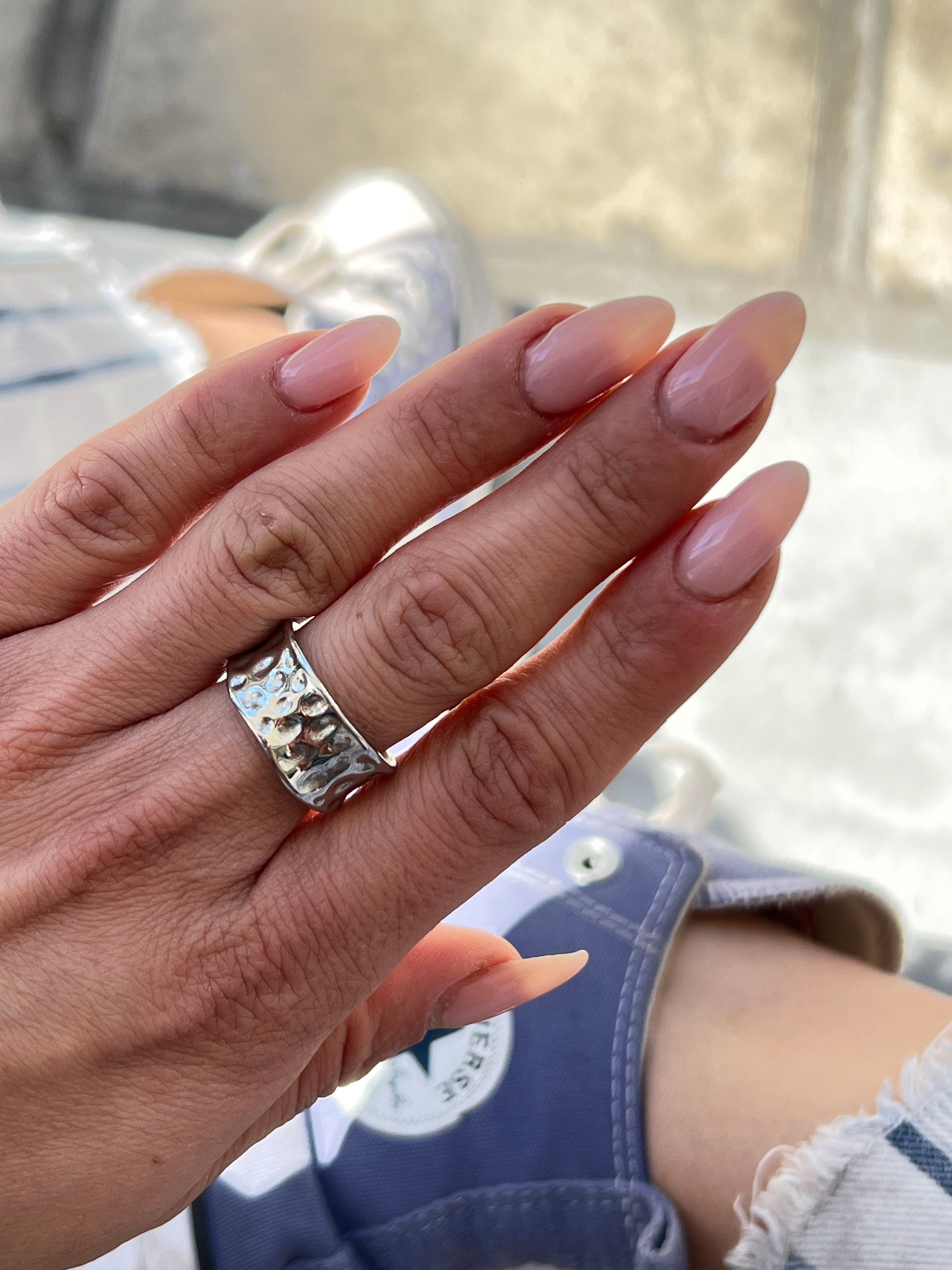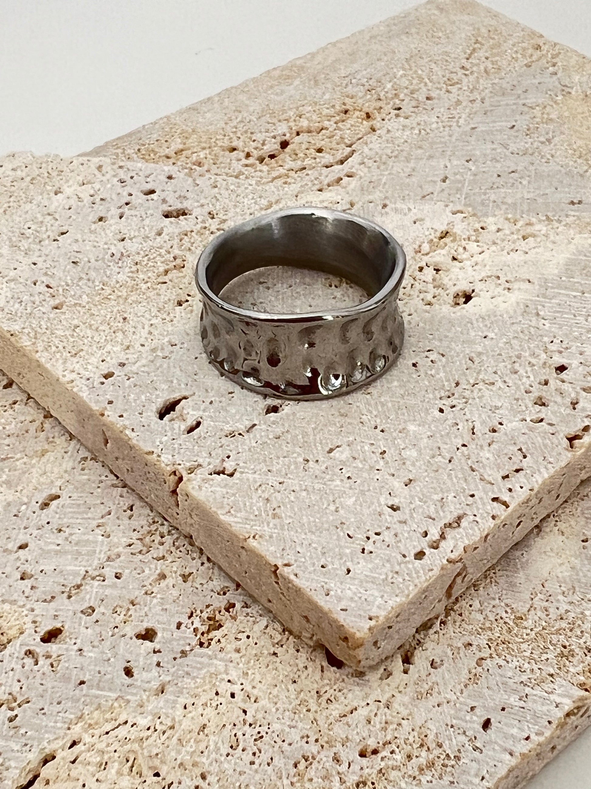 Το δαχτυλίδι Celia, κατασκευασμένο από ανοξείδωτο ατσάλι, διαθέτει ανάγλυφη σχεδίαση και κομψό ασημί τόνο. Ζήστε τον τέλειο συνδυασμό στυλ και άνεσης με αυτό το statement κομμάτι.