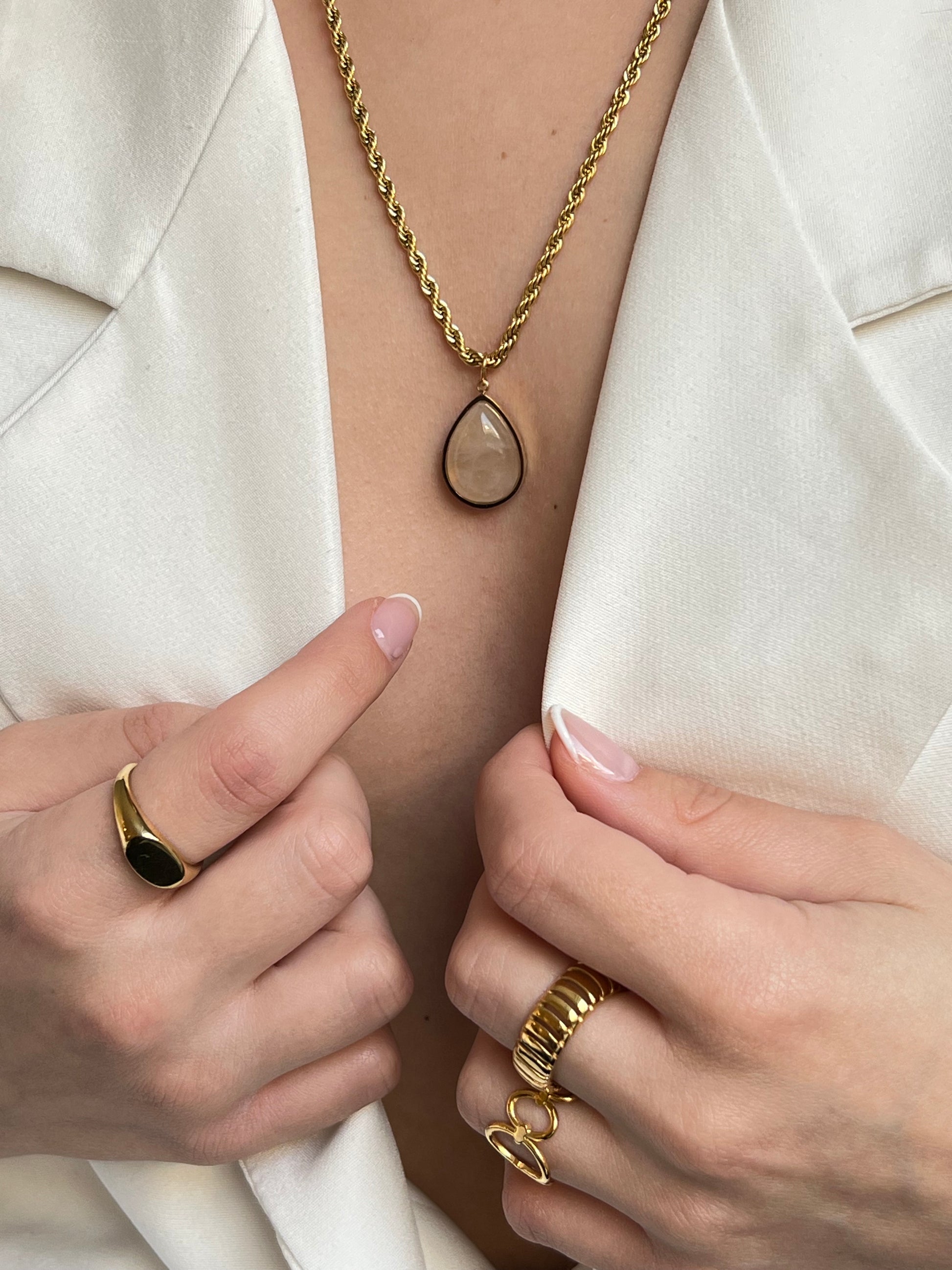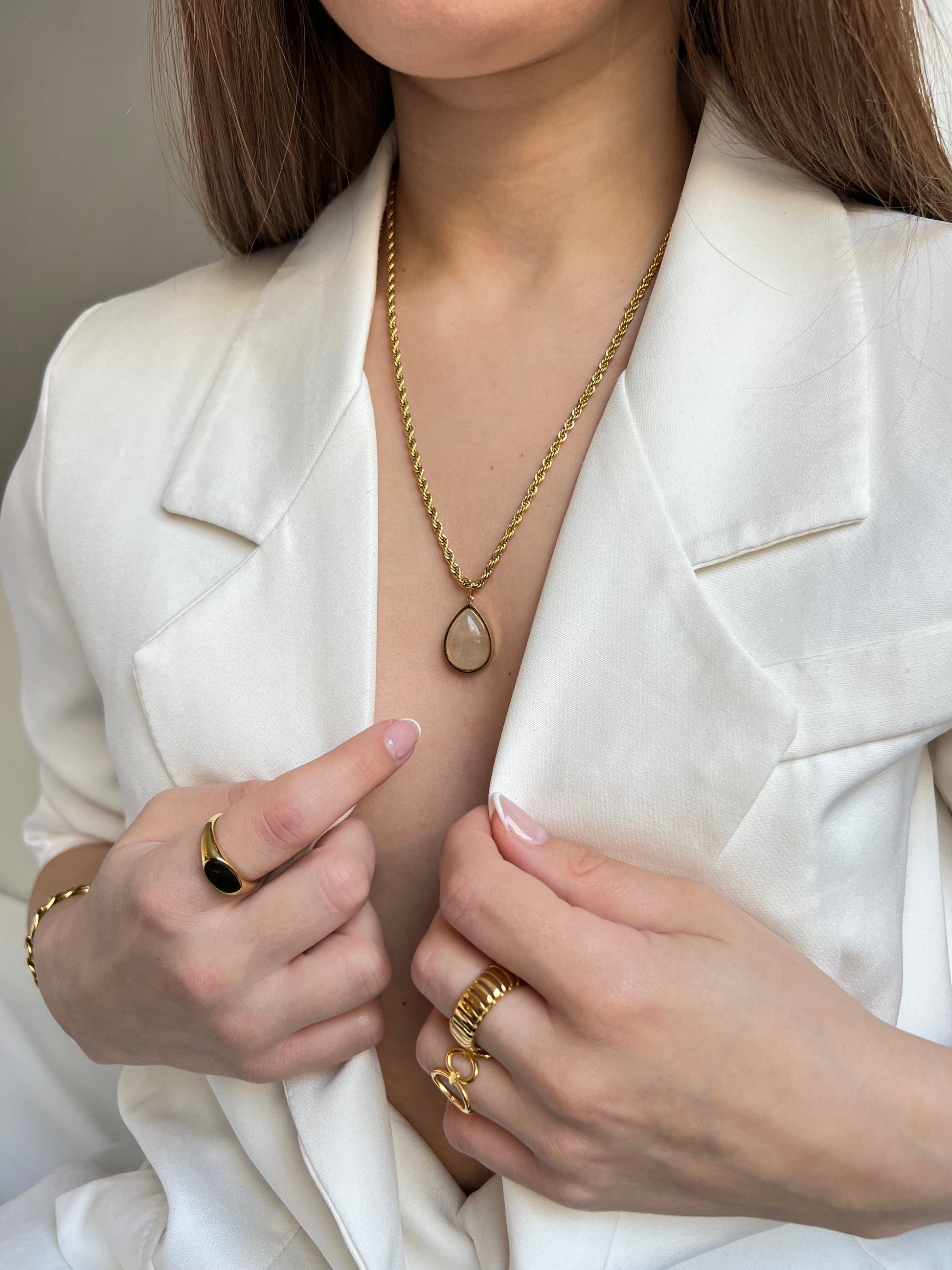 Σας παρουσιάζουμε το Celine - το εντυπωσιακό κολιέ από υψηλής ποιότητας ανοξείδωτο ατσάλι, διακοσμημένο με μια εκθαμβωτική πέτρα. Αναβαθμίστε την εμφάνισή σας με το όμορφο χρυσό φινίρισμα και τον πολυτελή σχεδιασμό του. Ιδανικό για κάθε περίσταση, αυτό το κολιέ είναι απαραίτητο για όσους εκτιμούν τόσο το στυλ όσο και την αντοχή. Ζήστε την ομορφιά και την αίγλη του Celine!