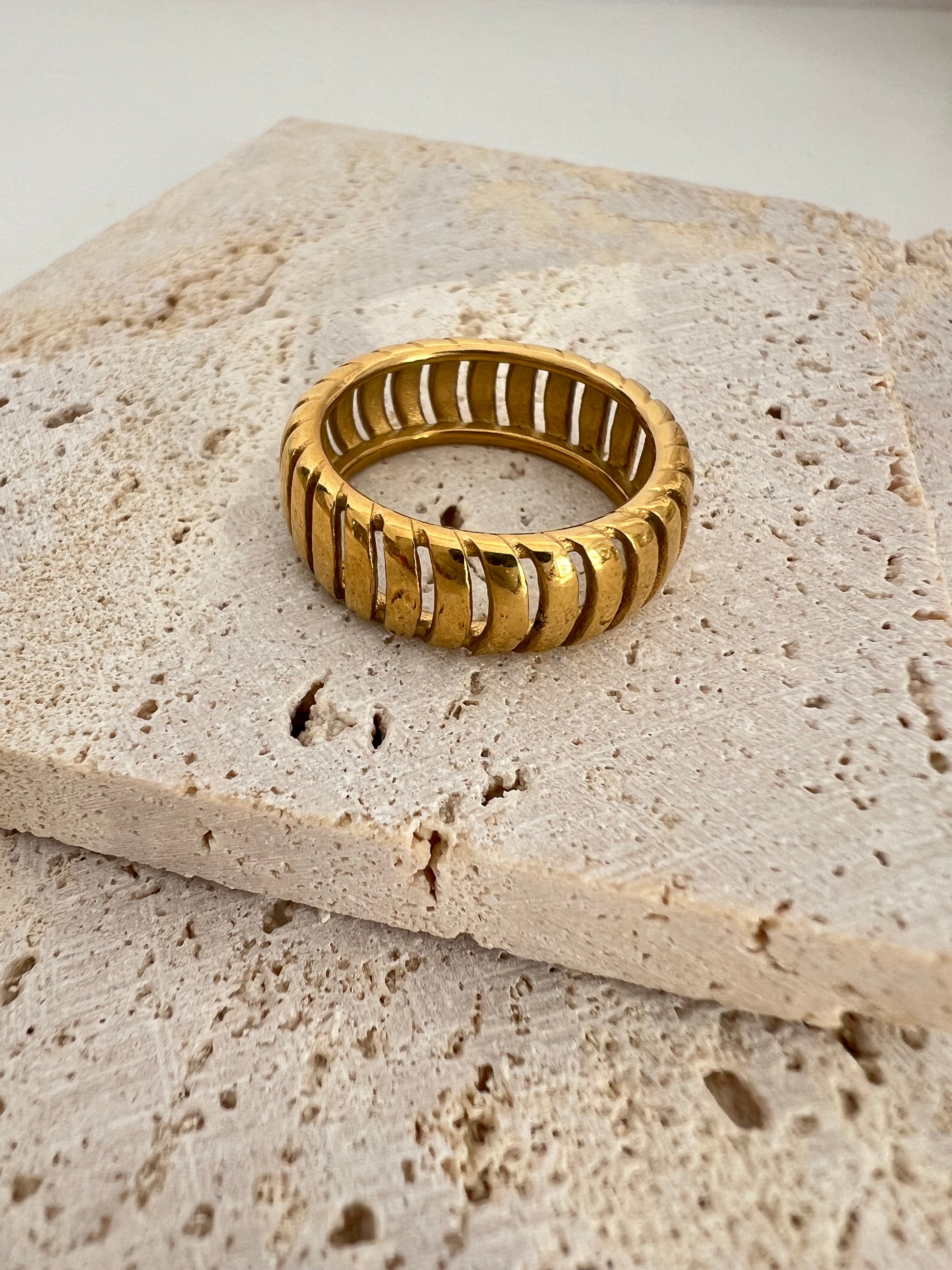Ξεκλειδώστε τη διαχρονική κομψότητα του δαχτυλιδιού Deep. Κατασκευασμένο από ανθεκτικό ανοξείδωτο ατσάλι, η χρυσή του απόχρωση αποπνέει πολυτέλεια και κομψότητα. Ένα must-have για κάθε συλλογή κοσμημάτων.