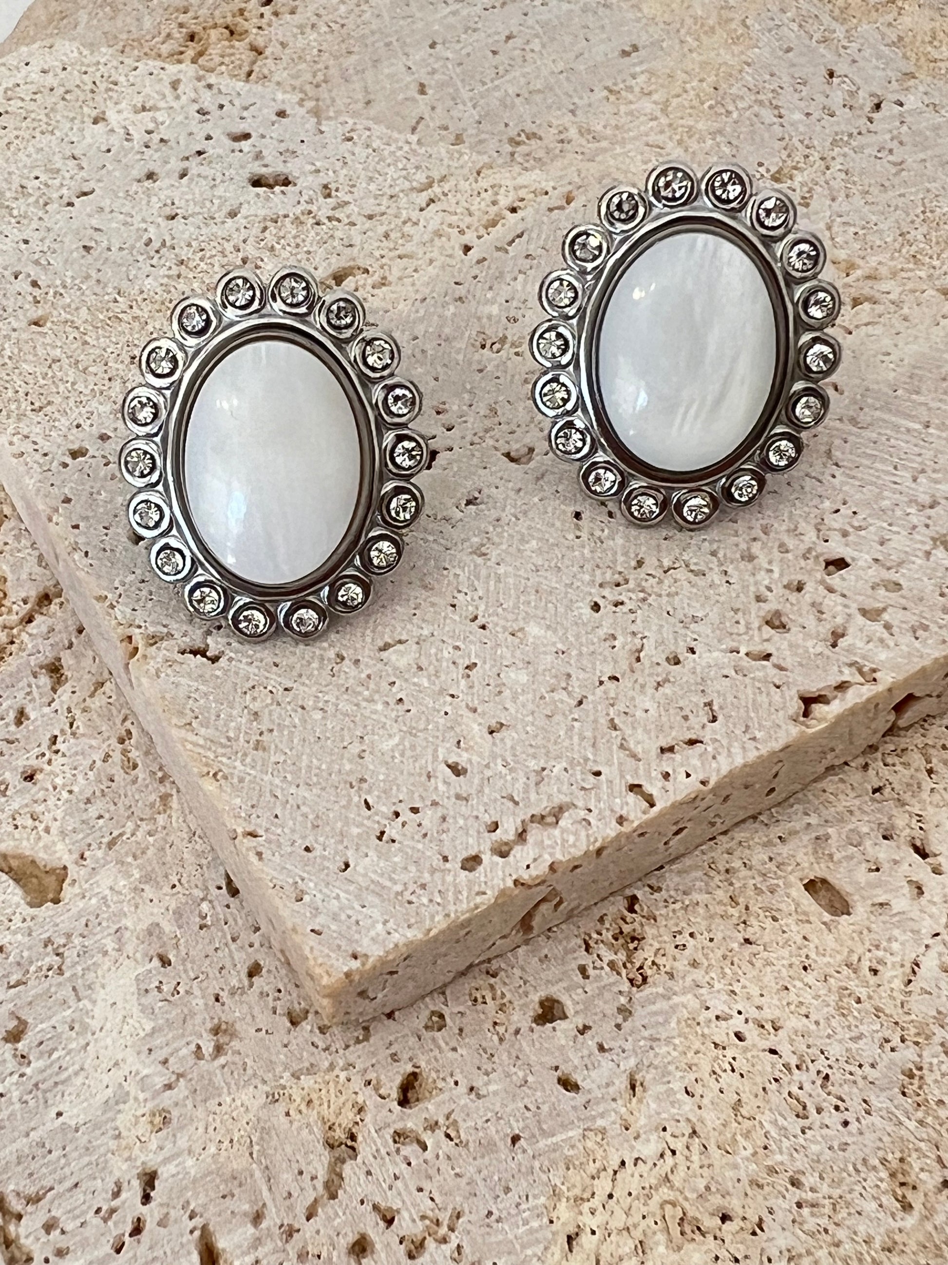 Αναβαθμίστε το στυλ σας με τα εντυπωσιακά σκουλαρίκια από ανθεκτικό ανοξείδωτο ατσάλι Vinty, σε ασημί απόχρωση! Διαθέτοντας μια εκθαμβωτική λευκή πέτρα, αυτά τα σκουλαρίκια θα προσθέσουν μια πινελιά κομψότητας σε κάθε ντύσιμο. Ανεβάστε την εμφάνισή σας με το Vinty!
